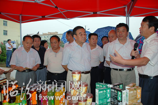 臨汾新聞網訊 8月23日至24日,市政協二屆二十七次常委會議在曲沃召開。會議期間,與會人員冒雨視察了曲沃縣農業產業化發展典型企業和農產品園區。圖為市政協主席常富順(中)在曲沃太子灘回春豆業集團了解企業發展情況。