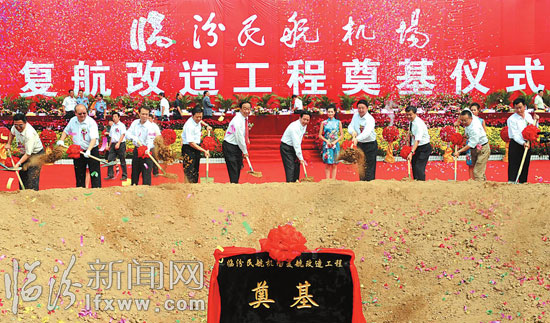 圖為省市領導為臨汾民航機場復航改造工程奠基。 記者 閆銳鵬 攝