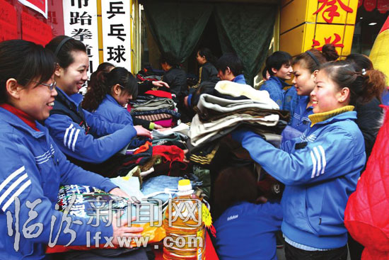 此次活動由融成士博健身會所、萬佳福倉儲超市發(fā)起主辦,倡導(dǎo)員工及社會各界愛心人士捐獻(xiàn)衣物、棉被、毛毯和米、面、油等過冬物品,向貧困山區(qū)傳遞社會的溫暖。本次捐助截止12月30日,并將于2011年1月2日送往鄉(xiāng)寧縣尉莊鄉(xiāng)曲子大隊(duì)、山水大隊(duì)。(記者 趙文家 攝)