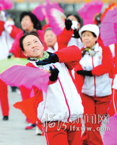12月16日,在市區(qū)平陽(yáng)廣場(chǎng),參加晨練的市民在跳扇子舞。隨著全市環(huán)境治理力度不斷加大,市區(qū)環(huán)境質(zhì)量一天更比一天好,每天晨練的隊(duì)伍成為城市一道亮麗的風(fēng)景。 記者 閆銳鵬 攝