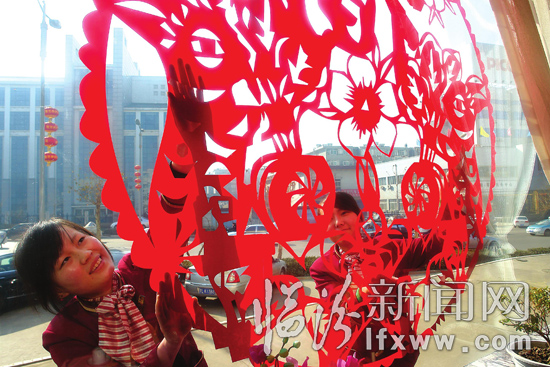 1月30日,位于市區鼓樓西大街的一家酒店的員工們正在貼窗花,迎接春節的到來。記者 趙文家 蘇亞兵 攝影報道