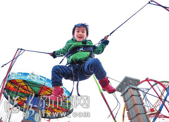 2月7日,小朋友在堯廟廣場高興地蹦極。記者 李虎威 攝