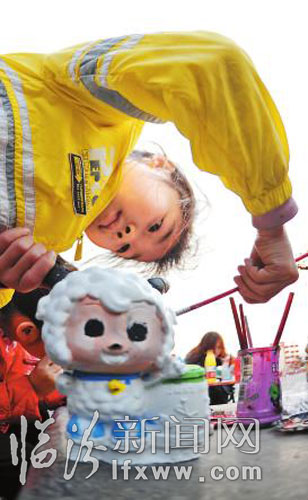 2月7日,小朋友在堯廟廣場認真地進行彩繪創作。記者 李虎威 攝