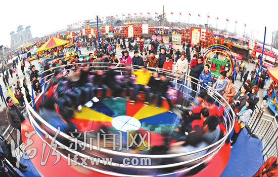 2月7日,市民在堯廟廣場體驗“瘋狂轉椅”。 記者 李虎威 攝