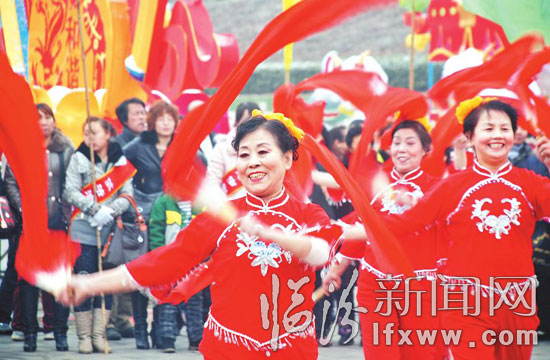2月10日,堯都區(qū)鼓樓西街辦事處在平陽廣場舉辦春節(jié)文化活動(dòng)展演,社區(qū)居民們以傳統(tǒng)的社火形式,載歌載舞歡慶春節(jié)。 記者 李自強(qiáng) 攝