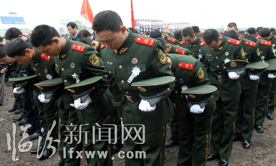 圖為武警官兵在為臨汾攻堅戰中犧牲的無名英烈默哀。