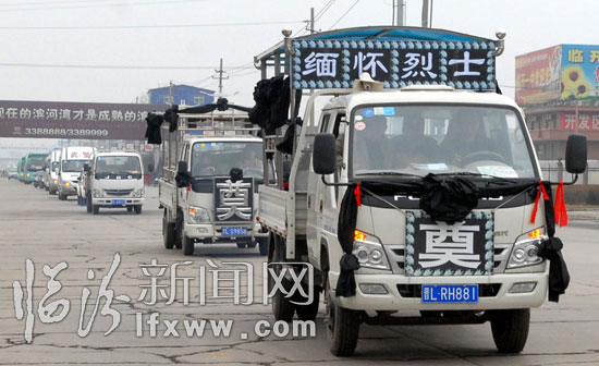 圖為運送英烈靈骸的靈車在開往臨汾烈士陵園。