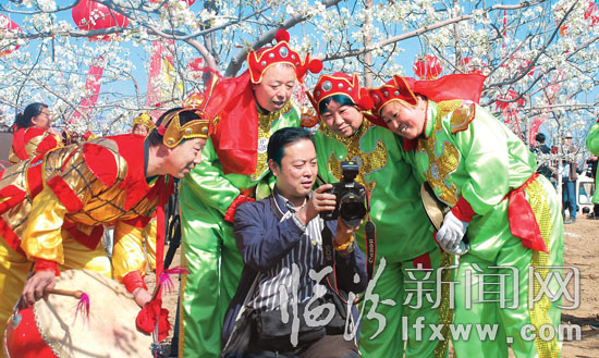 連日來(lái),中國(guó)·隰縣首屆梨花節(jié)在隰縣午城鎮(zhèn)陽(yáng)德塬萬(wàn)畝梨園開(kāi)幕。萬(wàn)畝梨園的美麗風(fēng)景吸引了眾多游客前來(lái)觀賞。 圖為一名攝影愛(ài)好者在向眾人展示自己拍攝到的梨園美景。本報(bào)記者 李自強(qiáng) 攝