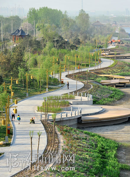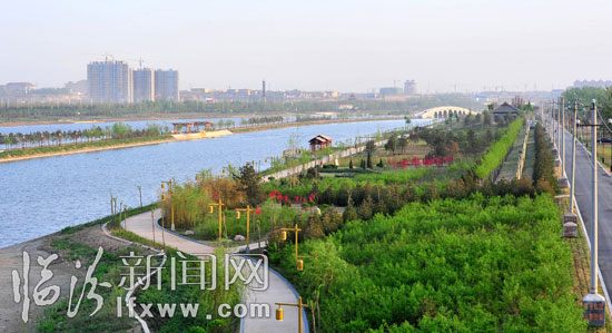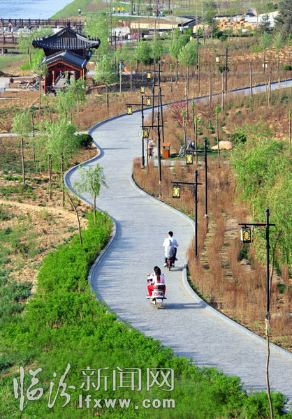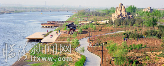 臨汾市汾河城區段生態環境綜合治理修復與保護工程總投14.9億元,以打造“臨汾客廳,城市綠肺,一川清水,兩岸錦繡”為建設目標,包括河道治理水利工程、濕地保護生態工程、市民休閑景觀工程,自2009年5月20日開工奠基以來,廣大建設者放棄節假日休息,24小時施工不間斷,確保五一勞動節期間正式向市民開放。(記者 閆銳鵬 攝影報道)