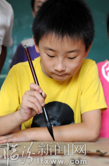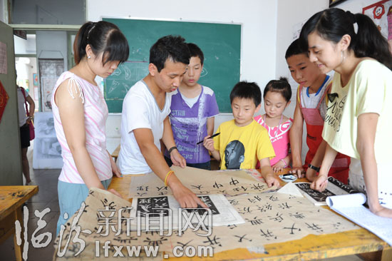 7月26日,在福強畫院少兒書法班,指導老師在和學生交流書法心得。隨著暑期的到來,孩子們在家長的帶領下參加了,書法、美術、舞蹈等培訓班,在專業老師的指導和幫助下,培養自己的藝術修養和動手能力,開始了愉快輕松的暑期生活。 記者 閆銳鵬 攝
