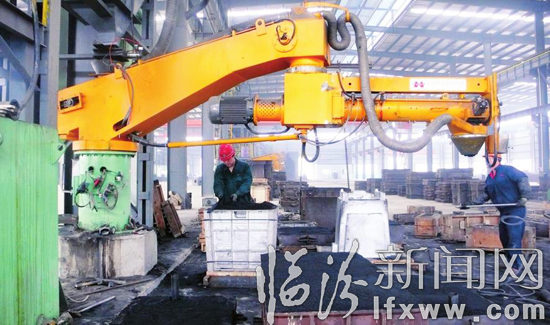 近日,山西韻德康精密機械鑄造有限公司生產車間,技術工人正在剛剛竣工的流水線上作業。韻德康20萬噸精密鑄件是侯馬市招商引資重點項目之一,該公司與全球最大的高精密平面磨床生產企業——臺灣建德工業股份有限公司及杭州蕭山康躍鑄造有限公司聯合組建的臺資企業。項目總投資3.3億元,全部達產后,將實現產值36億元,利稅8億元。