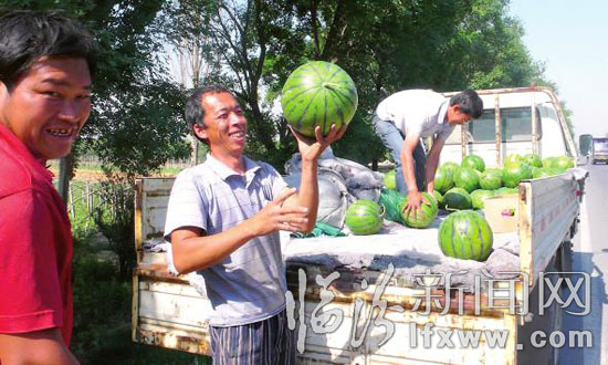 進入6月份,侯馬市上馬辦張少村每天前來批發西瓜的省內外客商絡繹不絕。張少村是遠近聞名的西瓜村,種植西瓜有20多年的歷史,每年都推出新品種,今年改良品種“授粉四號”皮薄瓤甜品質好,受到西瓜收購商的青睞。該村西瓜畝產量5000多公斤,每畝地瓜農可收入6000多元。圖為瓜農在搬運西瓜。 馮文芳 攝