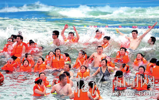 6月23日,游客在華堯水上樂園體驗海嘯帶來的快樂。當日,華堯水上樂園2012年水上嘉年華拉開序幕,恰逢端午假日,許多市民紛紛走出家門,與夏日的清涼水花來個親密接觸,在享受夏季戲水的動感歡樂中度過端午節。記者 閆銳鵬 攝