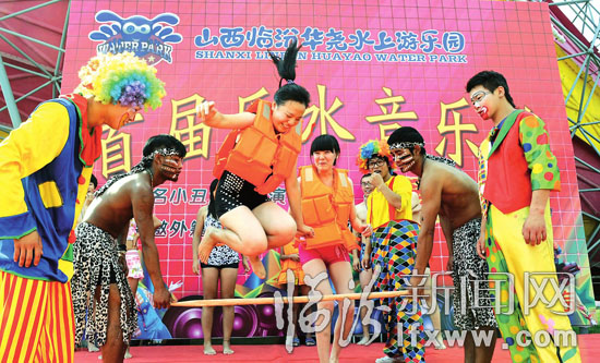 7月22日,在臨汾華堯水上樂園,游客在樂水音樂節(jié)上參與互動歡樂游戲。當(dāng)日,該游樂園首屆“樂水音樂節(jié)”舉行,來自全省各地的2000余名游客共享歡樂的樂章。據(jù)了解,該游樂園結(jié)合全市開展的“文明臨汾”活動,注重旅游服務(wù)質(zhì)量的提升,邀請了馬來西亞、泰國等地的樂團為游客表演了滑稽舞、魔術(shù)、歡樂大巡游等互動活動,全力打造夏日歡樂水世界。