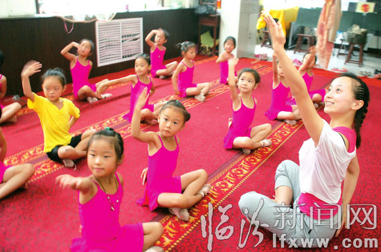 7月26日,在古縣青少年活動中心,一位舞蹈老師正在教學生跳舞。該中心從青少年興趣愛好出發,以培養創新精神和實踐能力為重點,堅持公益性原則,開設了舞蹈、美術、音樂等專業。假期來臨,這里成了孩子們的樂園。