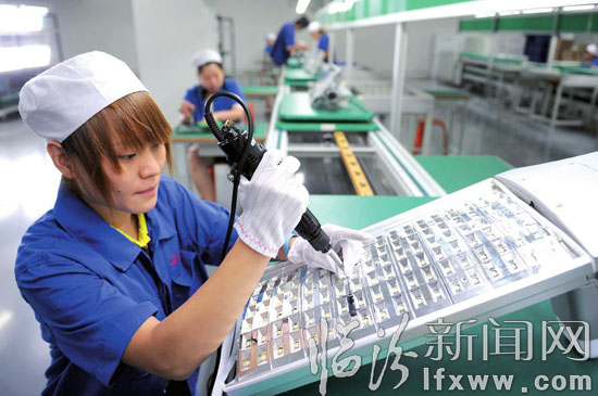 今年以來,山西飛虹微納米科技有限公司立足新能源材料和電子信息材料等新材料領域,強化大功率LED外延片、芯片、薄膜太陽能電池、高功率半導體激光器及其成套設備等的研發與生產,取得了良好的效益。圖為技術人員在安裝大功率半導體激光器。