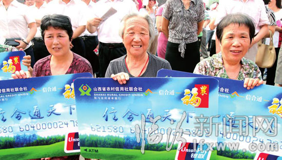 近日,侯馬市農村和城市無工作的60歲以上居民代表懷著喜悅的心情領取了社會養老保險金,這標志著侯馬市實現了城鄉居民養老保險全覆蓋。 張跟慧 攝