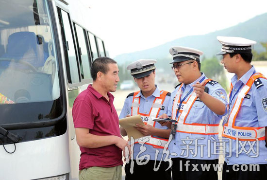 8月15日,蒲縣交警大隊黑龍關中隊的執勤民警在轄區檢查客運車輛。連日來,蒲縣公安局制定了詳細的安保措施,多警種結合,建立治安檢查站,構筑安全防線,有效保證“環京護城河”行動的落實和實施,為黨的“十八大”勝利召開創造和諧穩定的社會環境。