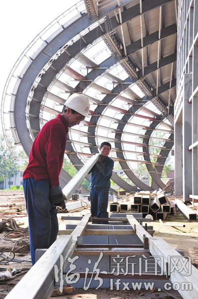 截止9月,候車大樓已完成有:樁基礎、地下室、室內回填土、鋼結構框架、二層混凝土樓板、樓梯以及部分加氣混凝土砌塊墻體、幕墻鋼結構。剩余分項工程有望在2012年末實現主體完工,目前各項工作正在緊張實施中。