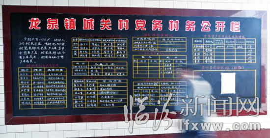 9月12日,一村民在隰縣城關村黨務村務公開欄前走過。
