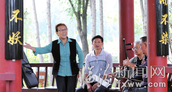 9月11日,霍州市老年大學的老人在公園唱廉政戲。
