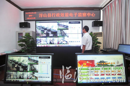 9月14日,浮山縣紀委工作人員在監察中心監管各服務單位。