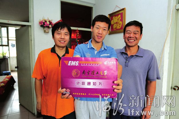 7月24日一大早,伴隨著祝賀和掌聲,居住在旋耕機廠小區的衛寒澤從郵遞員手中接過南京理工大學的錄取通知書。