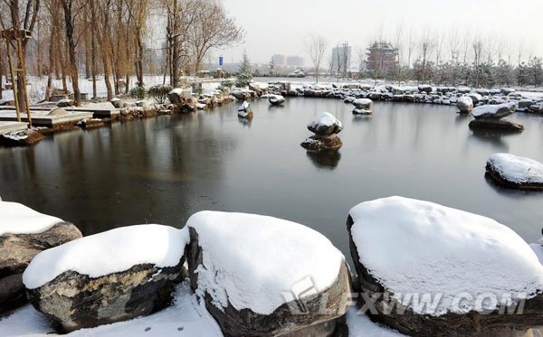 12月23日,在我市汾河公園,飄落的大雪把公園打扮得別有一番景致。市區汾河公園景區一片銀裝素裹,格外美麗,積雪與公園景點相映成輝,成為冬日里汾河公園一道靚麗風景。記者 閆銳鵬 攝