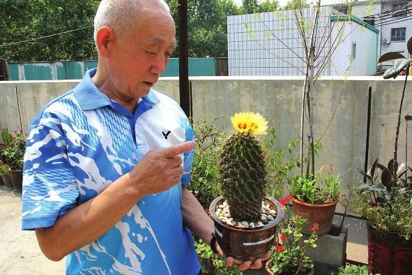 今年72歲的任守茂是一名養(yǎng)花愛好者,家里有40余種鮮花70多盆,開花的這盆仙人球高約20厘米,直徑約10厘米。