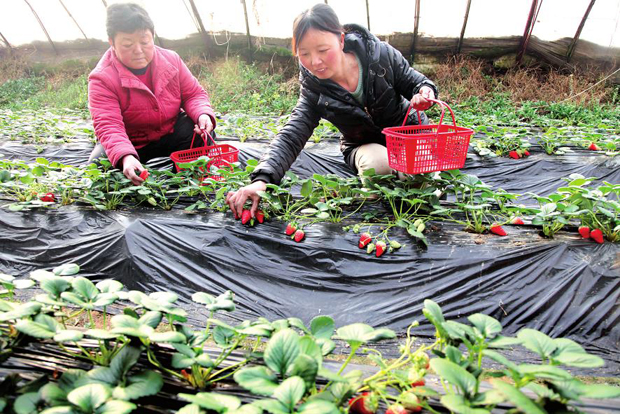 1月16日,侯馬市張村辦觀莊村豐園奶油草莓采摘園里春意盎然,游客正在采摘剛剛成熟的新鮮草莓,感受現實版QQ農場帶來的樂趣。該市各城郊村依托有利條件,積極發展觀光、休閑、高效農業,有效促進了農民增收。