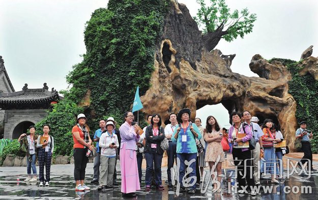 7月28日,在洪洞大槐樹尋根祭祖園,游客在景區(qū)游覽。連日來(lái),洪洞大槐樹尋根祭祖園景區(qū)迎來(lái)旅游高峰,來(lái)自臺(tái)灣、香港等地的旅游團(tuán)大幅提升,景區(qū)也適時(shí)安排了精彩的民俗文化表演,豐富景區(qū)文化內(nèi)涵。 本報(bào)記者 閆銳鵬 攝
