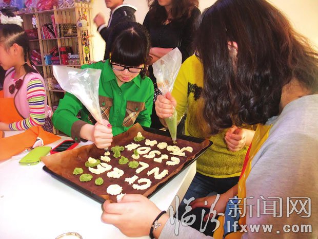 “攪拌、和面、畫線……”2月l9日,在鼓樓西的一家糕點房里,不少學生正在體驗自己動手做蛋糕、餅干、巧克力等食品,以豐富自己的寒假生活。