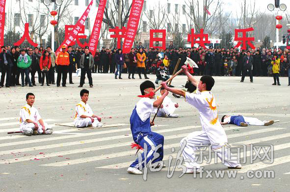 龍騰華夏,蛇舞九州,2月24日(農(nóng)歷正月十五)上午由中共堯都區(qū)委、堯都區(qū)人民政府主辦的2013年“靚麗臨汾”元宵節(jié)社火展演在堯都公園廣場舉辦,來自堯都區(qū)各鄉(xiāng)鎮(zhèn)、街道的12支表演隊(duì)伍在這喧鬧的廣場、動(dòng)感的街頭,打起鼓,敲起鑼,載歌載舞。