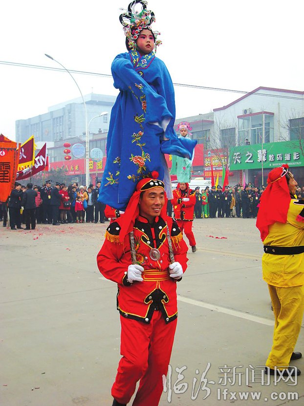 當(dāng)“仙子”從扁擔(dān)上下來后,記者得知她叫姜世霞,今年19歲,在靈石打工,她的母親名叫蔣紀(jì)蘭。那么高就不害怕?”同行的朋友問。有那么多人保護(hù),怕啥?”蔣紀(jì)蘭回答。隨后村干部介紹,該村的高蹺距地面只有二尺二,在高蹺表演中屬于“武”類的。跳桌子、單人跳、雙人跳、踩扁擔(dān),這些動(dòng)作組織起村民還能表演,像就地劈叉,也就是汾西人說的劈八叉,在沒有人幫助的情況下站起來的高難動(dòng)作,會(huì)做的年齡大了,年輕的還不會(huì),由于種種原因,這樣高難動(dòng)作也有斷代的可能。