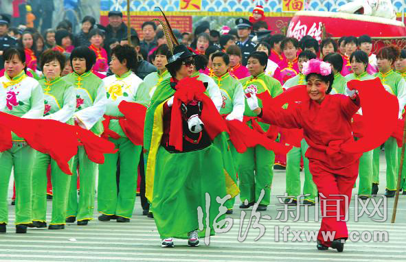 看完了鑼鼓,伴隨著喜慶的旋律,段店秧歌表演隊(duì)緩緩進(jìn)入會(huì)場。她們紅綢飄飄,彩扇翻飛,展示了當(dāng)代農(nóng)民的質(zhì)樸和善良,舞出了農(nóng)民開拓創(chuàng)新、拼搏進(jìn)取的決心和信心。