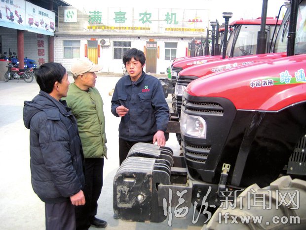 2月24日,幾位農民正在曲沃縣滿喜農機公司精心選購拖拉機。
