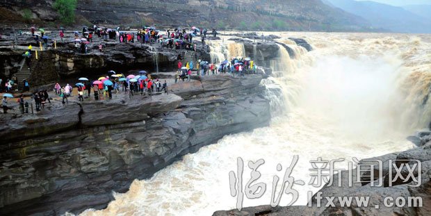 晴天里“湍勢吼千牛”的壺口瀑布,在雨天也呈現出別樣風情。4月4日傍晚,春雨綿綿,卻絲毫不影響旅客觀賞瀑布的熱情。暢行在壺口兩岸,游人撐起五顏六色的雨傘,靜靜地觀賞者壺口激流飛濺的河水。遠遠望去,多彩的雨傘猶如一朵朵綻放的鮮花,花團錦簇。