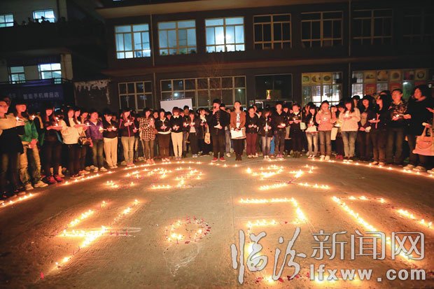 4月21日,山西師范大學(xué)現(xiàn)代文理學(xué)院的大學(xué)生在為四川雅安地震災(zāi)區(qū)祈福。當(dāng)日,該校學(xué)生社團(tuán)組織了“今天,我們都是雅安人”為雅安祈?;顒?dòng),學(xué)生們自發(fā)點(diǎn)燃祈福蠟燭,擺成愛心蠟燭陣,在沉痛的哀樂中為雅安祈福,寄托對災(zāi)區(qū)人民的祝福。(記者 閆銳鵬 攝)