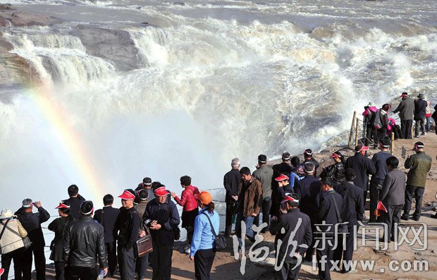 4月29日,眾多游客在吉縣黃河壺口瀑布景區游覽觀瀑。 “五一”小長假期間,吉縣黃河壺口瀑布再掀旅游熱潮,前來壺口瀑布觀光的游客絡繹不絕。 呂桂明 攝