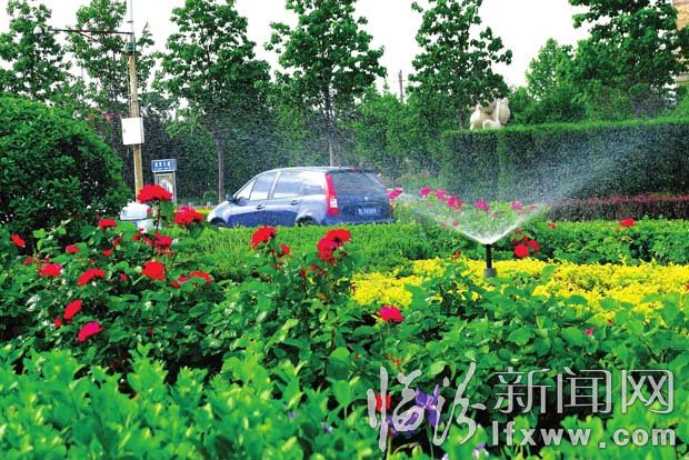 5月12日,記者在堯都區(qū)迎賓大道看到,道路中央的綠化隔離帶灌溉措施由傳統(tǒng)的人工澆灌改為自動的噴灌方式。據(jù)了解,這種自動噴灌的方式非常省水,同時,還給我市增添了一道亮麗的風景線。