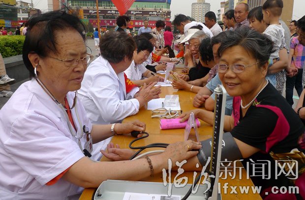 5月22日,由我市醫療單位退休專家組成的老年志愿者在市區平陽廣場為市民義診。當日,市婦聯和市老齡委組織了10余名由退休醫療專家組成的志愿者服務隊,開始為期8天的義診獻愛心活動,通過進廣場、社區、公園為市民義診的形式發揮余熱,把健康送給廣大市民。