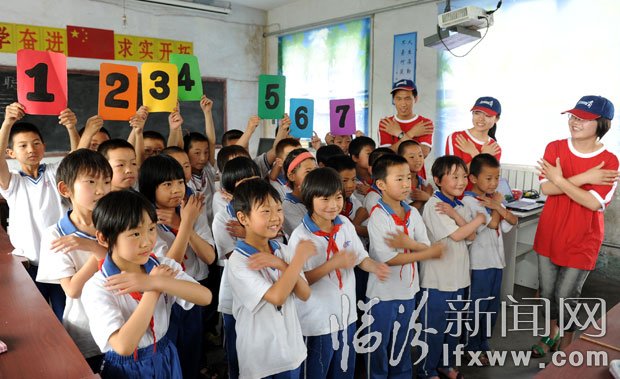 志愿者在為孩子們上音樂課(記者 閆銳鵬 攝)