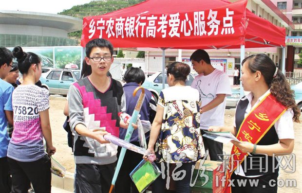 鄉寧農商行工作人員設立愛心服務點服務考生。趙國良 周向峰 攝