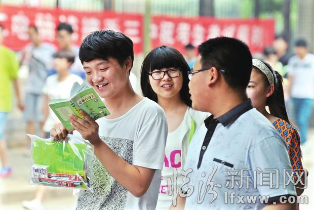 剛剛走出考場的一名考生在核對考試答案。記者 閆銳鵬 攝