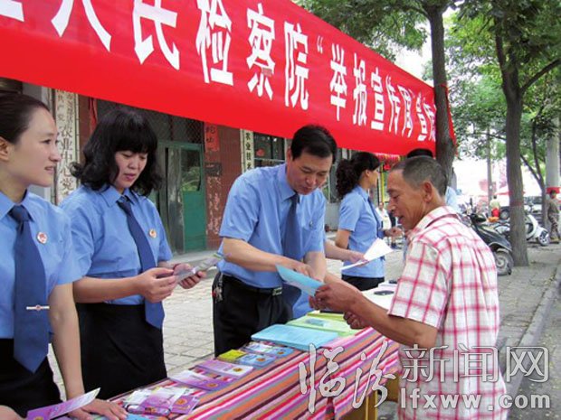 6月25日,堯都區檢察院在市區部分交通主干道設立“舉報宣傳點”,張貼宣傳掛畫,散發宣傳資料,為市民宣傳法律知識、答疑解惑。活動中,工作人員緊緊圍繞“三農”和教育、就業、住房、社會保障、生態環境、安全生產、醫療醫藥、執法司法等重點工作領域和關鍵環節進行宣傳,引導人民群眾學法、守法,勇于同職務犯罪作斗爭。