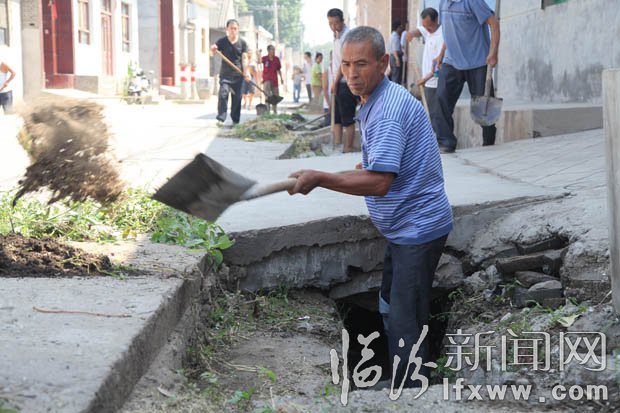 6月29日, 襄汾縣襄陵鎮齊村的37名黨員清理排水溝中垃圾, 對全村的街巷進行義務大掃除。 據了解,該村黨員自2008年以來每到“七一”都以開展義務勞動的形式迎接黨的生日。王子見 荊波鋒攝