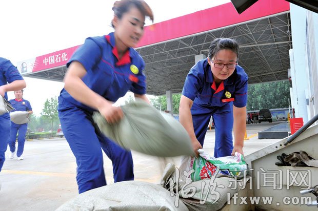 7月11日,中石化臨汾分公司在汾河沿線馬務南加油站進行防汛演練。進入汛期以來,該公司高度重視防汛工作,加強演練,未雨綢繆,確保安全。記者 李虎威 攝