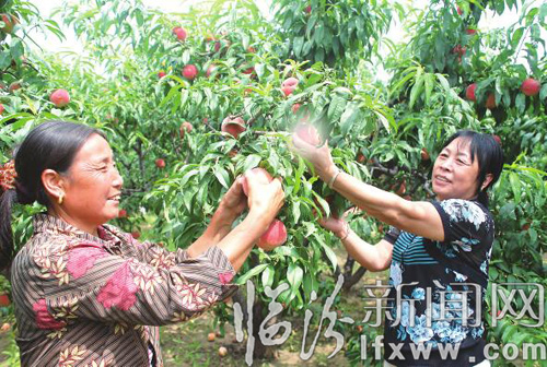 太德鄉(xiāng)素有萬畝垣之稱,為晉西北第一大垣。從2003年開始到現(xiàn)在,全鄉(xiāng)共發(fā)展桃樹3000余畝,盛果期面積達(dá)到1000畝左右。畝均產(chǎn)量達(dá)到1500公斤、產(chǎn)值突破2500元。目前,該縣新增桃園面積已超過萬畝,分布于太德鄉(xiāng)、昕水鎮(zhèn)和三多鄉(xiāng),桃樹產(chǎn)業(yè)已成為大寧農(nóng)民增收的新亮點(diǎn)。記者 李自強(qiáng) 攝