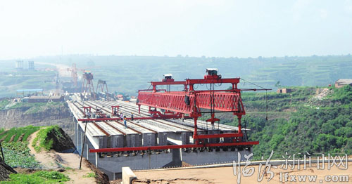 永安大橋是霍永高速貫通汾西引線、實施城鎮擴張、建設汾西“三垣一城”的重要樞紐。大橋全長1000米,最大高度100米,橋寬25米,總投資1.5億元。大橋建成后,不僅可以改善縣城交通條件,而且將連通縣城垣面、古郡垣面、府底垣面,拓寬縣城空間。圖為大橋施工現場。