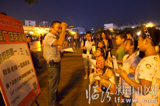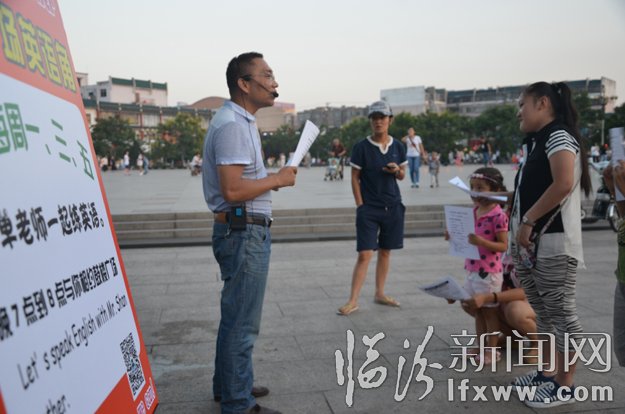 8月15日晚19時,“鼓樓廣場英語角”又準時開課了。市區居民單永強既是英語角的發起者,又是英語角的踐行者,他希望靠自己的力量搭建起一個“談話式”英語交流平臺,結交更多的英語愛好者,同時也幫助學生提高學習英語的興趣。
